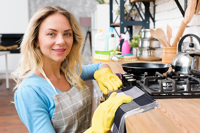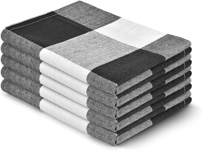 Set of 5, Black and White Plaid Super Absorbent & Quick Drying, Long Lasting Hotel Quality Kitchen Towels Set (X Large)